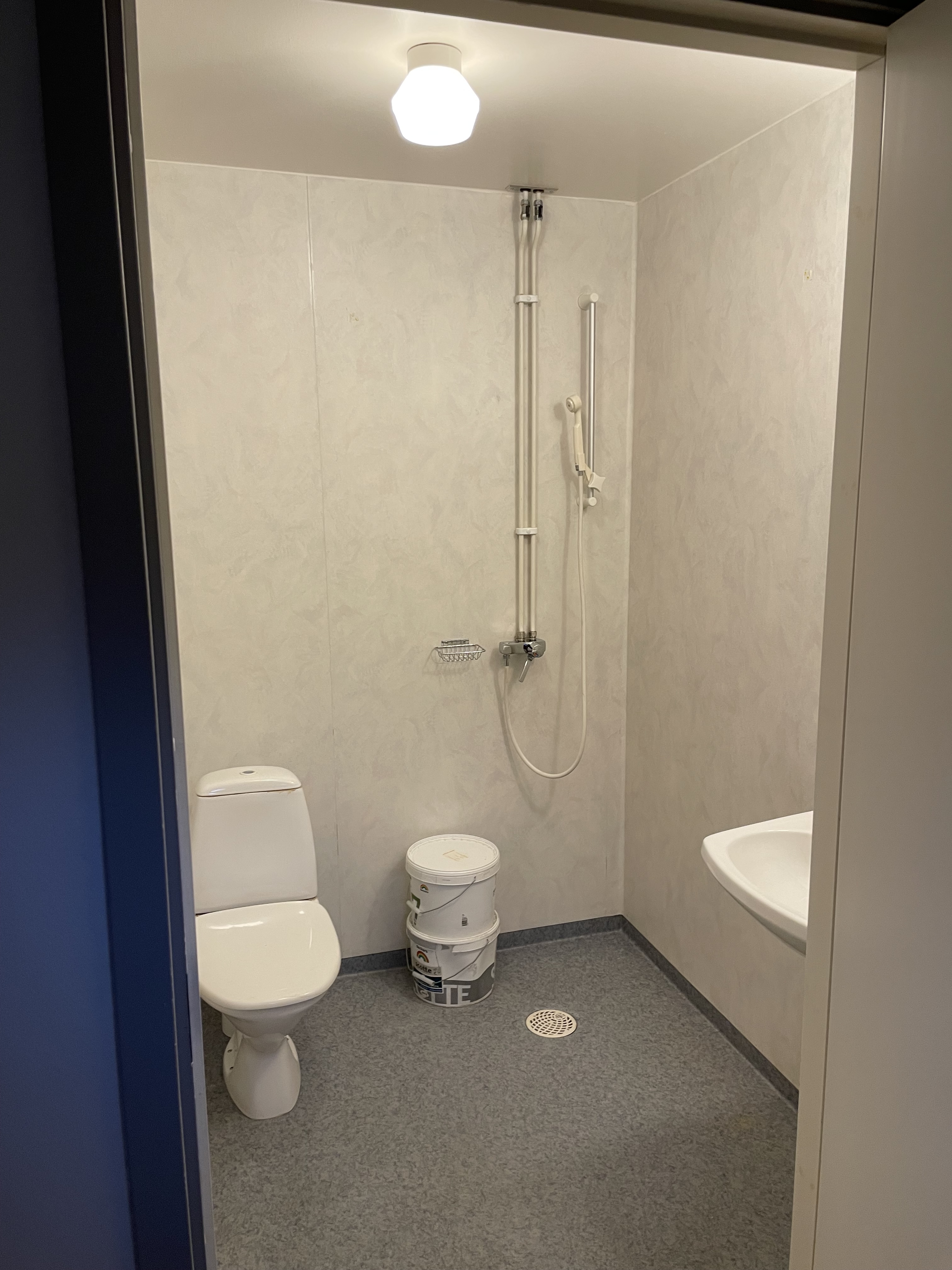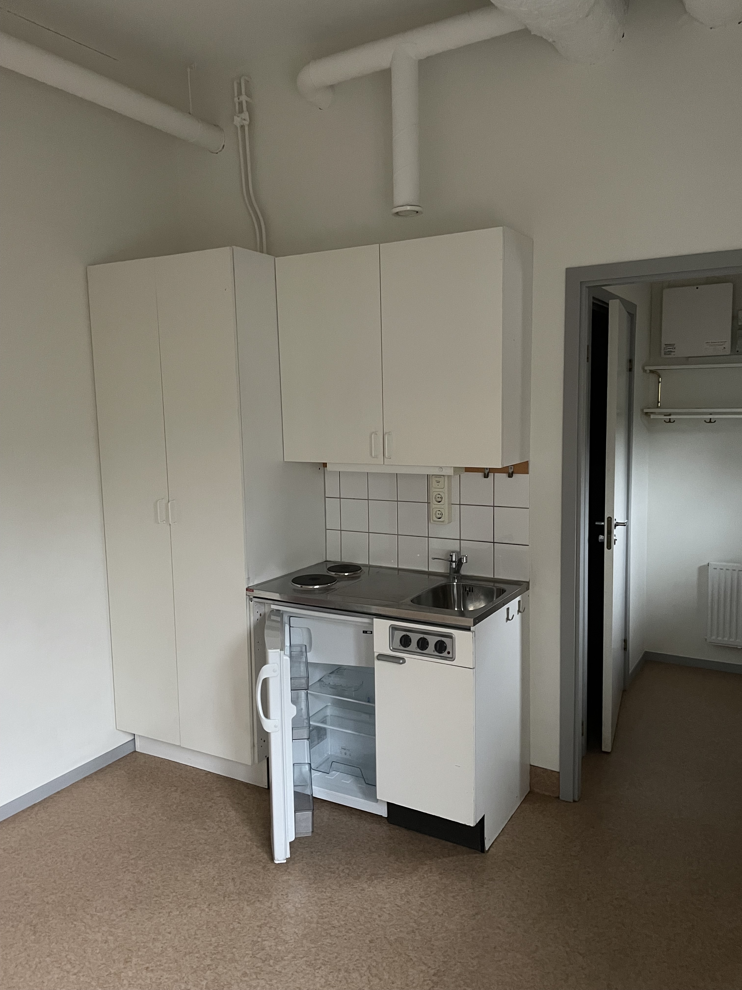 En stor öppen yta med skyltfönster mot Brunnsgatan kompletteras med en del in mot gården bestående av ett mindre kontorsrum, kök med pentry, hall samt badrum.