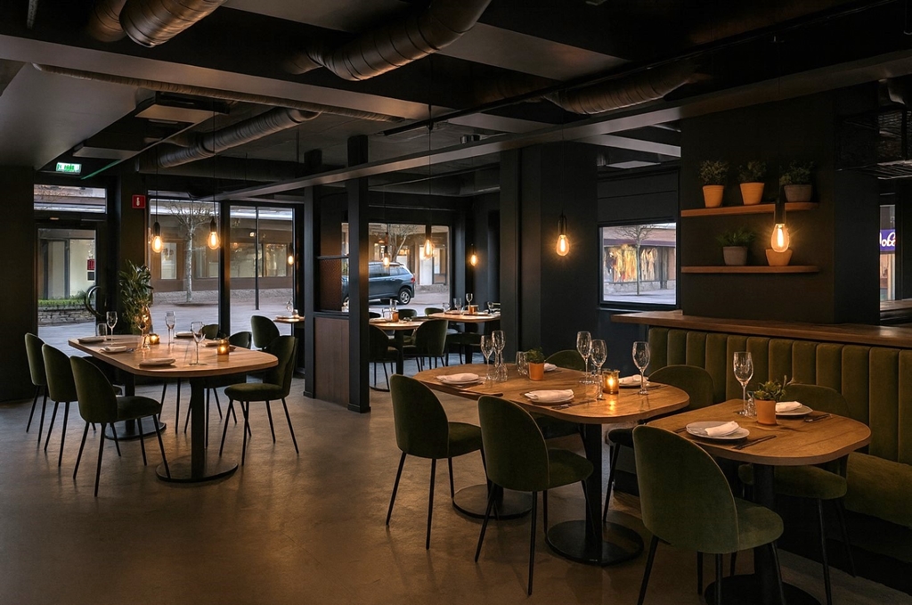 - Restaurangdel med plats för både servering och bar